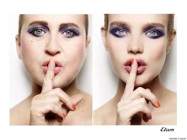 从妆容到服装,最后到背景,几乎都是一模一样的。只是换了一个模特而已。▼